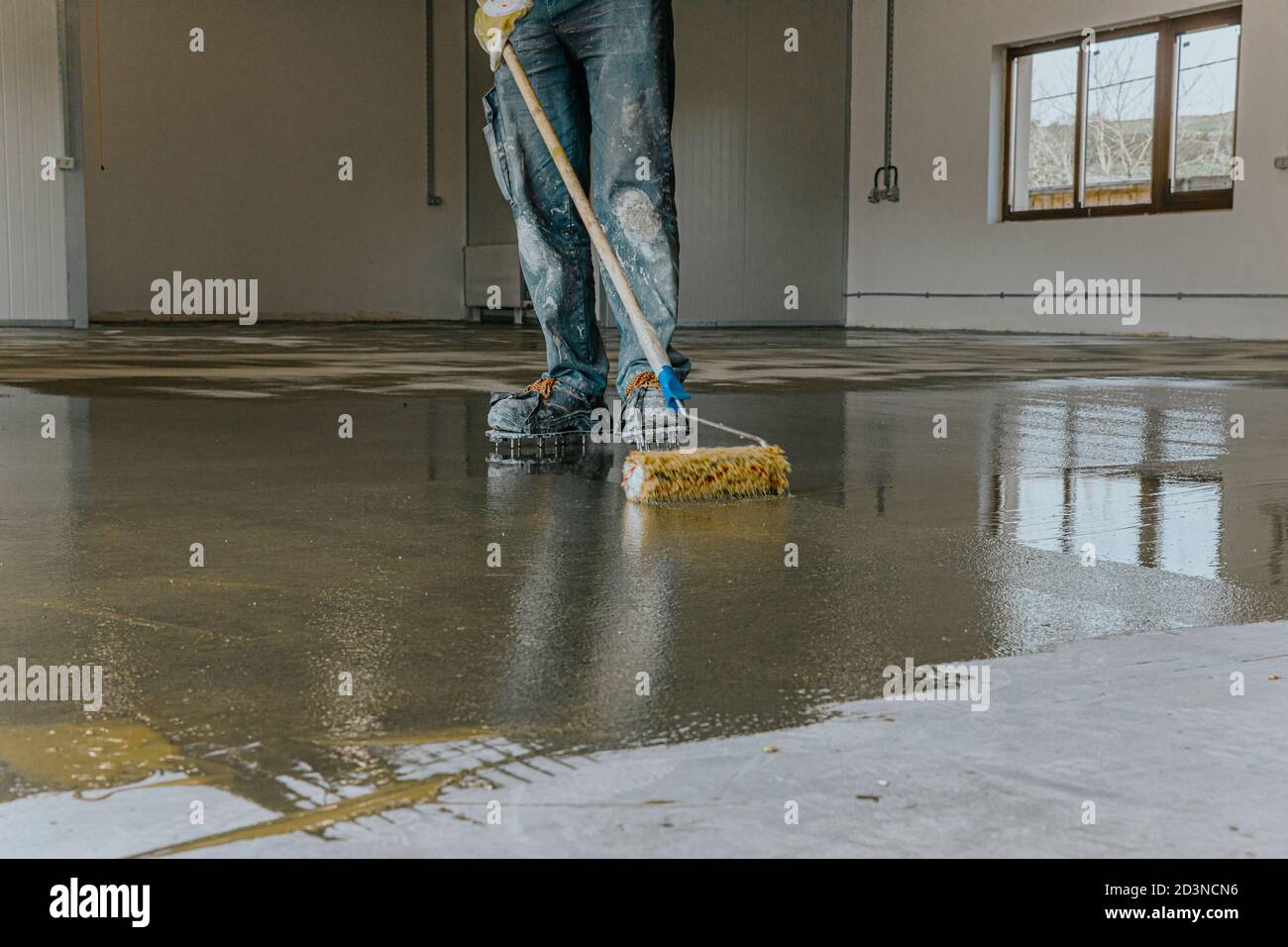 Self Leveling Epoxy Leveling With A Mixture Of Cement Floors Stock Photo Picture And Royalty Free Image Image 119102916